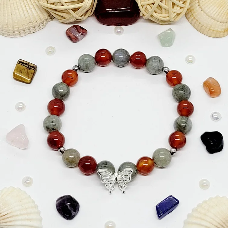 Offrez-vous ce bracelet en pierre de Labradorite & cornaline pour femme et bénéficiez de ses multiples vertus.