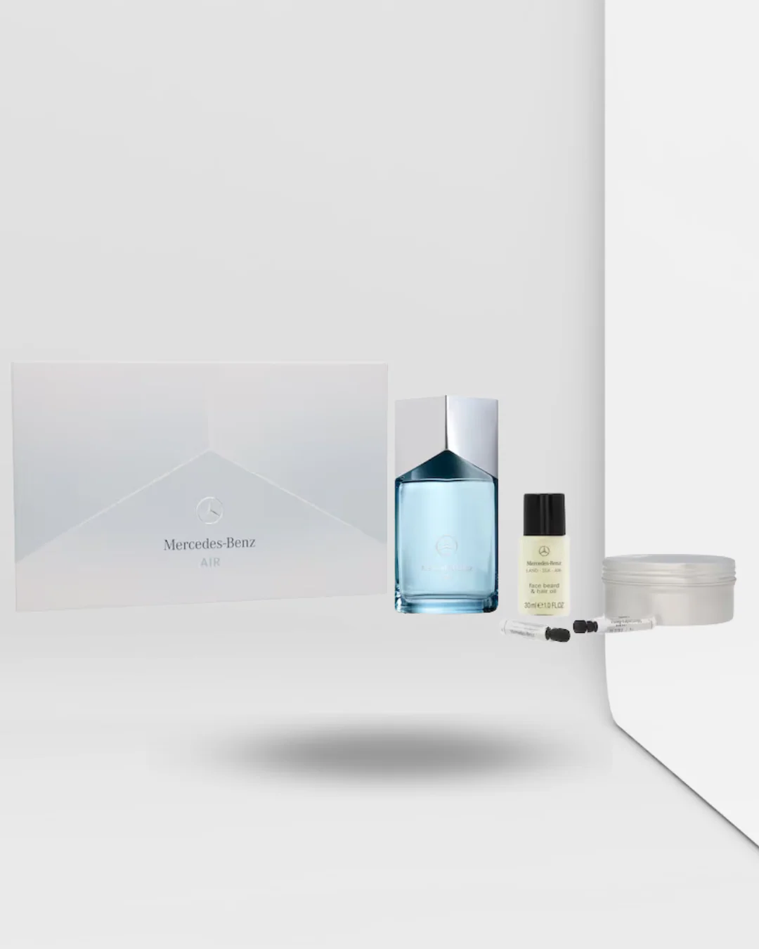 Terre, eau, air : la nouvelle trilogie de parfums de Mercedes-Benz s’inspire de la puissance des éléments. Alors que LAND, avec son tonka terreux et sa coquille de cacao addictive, symbolise la chaleur et l’enracinement, SEA rappelle les profondeurs de l’océan par son parfum d’algues et de mandarines fraîches. AIR évoque la liberté avec une note extravagante d’angélique et d’agrumes rafraîchissants. Le patchouli boisé et fleuri constitue la base des trois parfums. La combinaison donne vie à une trilogie emblématique dans laquelle les trois éléments de base se combinent pour créer une expérience olfactive unique. Le coffret cadeau comprend, outre l’eau de parfum AIR, des échantillons de produits des parfums SEA et LAND. Un gel douche solide et une huile complètent le contenu.
