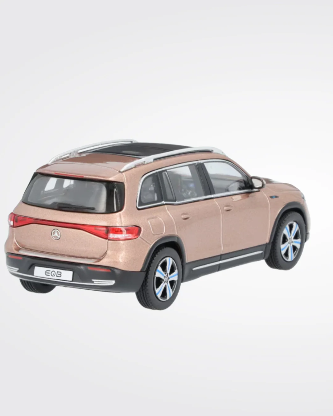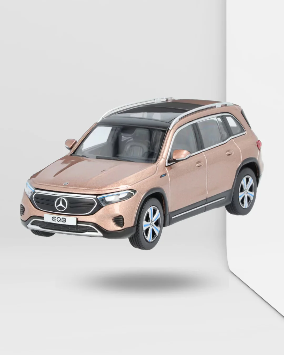 A la fois puissant et tout-terrain, durable et efficace en énergie : l’EQB convainc sur toute la ligne. Reproduit à l’identique, le modèle réduit du SUV électrique impressionne par ses nombreux détails fidèles à l’original. Extérieur Progressive Line, phares LED hautes performances, toit ouvrant panoramique, jantes alliage de 19 pouces à 5 branches ou peinture dans la teinte d’origine : le modèle réduit de précision, assemblé à la main, présente tous les détails, même les plus infimes. Un amour du détail qui se reflète dans les nombreuses éléments haut de gamme de l’habitacle. Le modèle réduit est monté sur un socle imprimé et livré dans un coffret Mercedes-Benz EQ assorti.