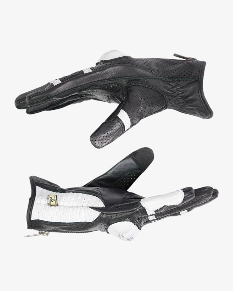 Gants en peau de chèvre de haute qualité avec protection rigide des articulations et renforcement de la paume en aramide pour une meilleure résistance à l’abrasion. Comprend des zones de confort rembourrées, une fonction tactile sur l’index et le pouce et une fermeture à glissière YKK® pour un ajustement sûr. Idéal pour les motards qui recherchent la sécurité et le confort sans compromettre le style.