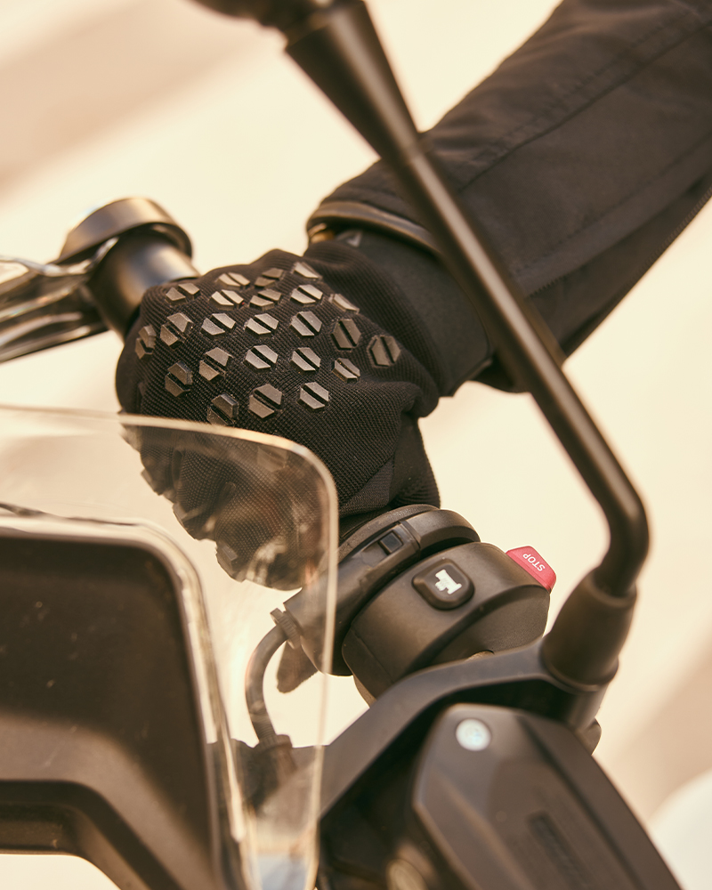 Mise en œuvre de tissus anti abrasion Fabriqué Sans protection des articulations Fonction tactile sur l’index et le majeur Ajustable par velcro au poignet Bracelet Produit homologué pour les motos CE UNE EN : 13594:2015 Tailles disponibles X XS S M L XL XXL Couleurs Noir Bleu Orange Gris Rouge
