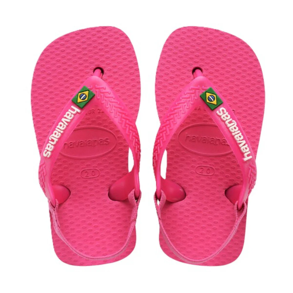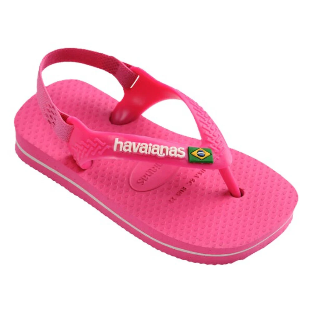 • Marque : Havaianas • Modèle : Baby Brasil Logo II • Couleur : Rose flux et blanc • Matériau : Caoutchouc
