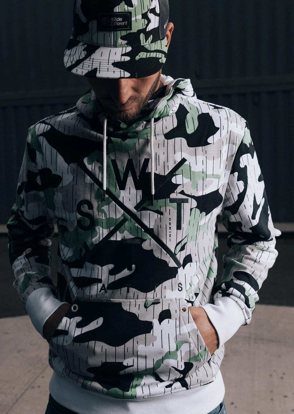 Son imprimé alliant parfaitement du blanc, de noir et du Vert Sauge pour un look, tendance, coloré et assuré. Le sweat Spray n’attend que vous.