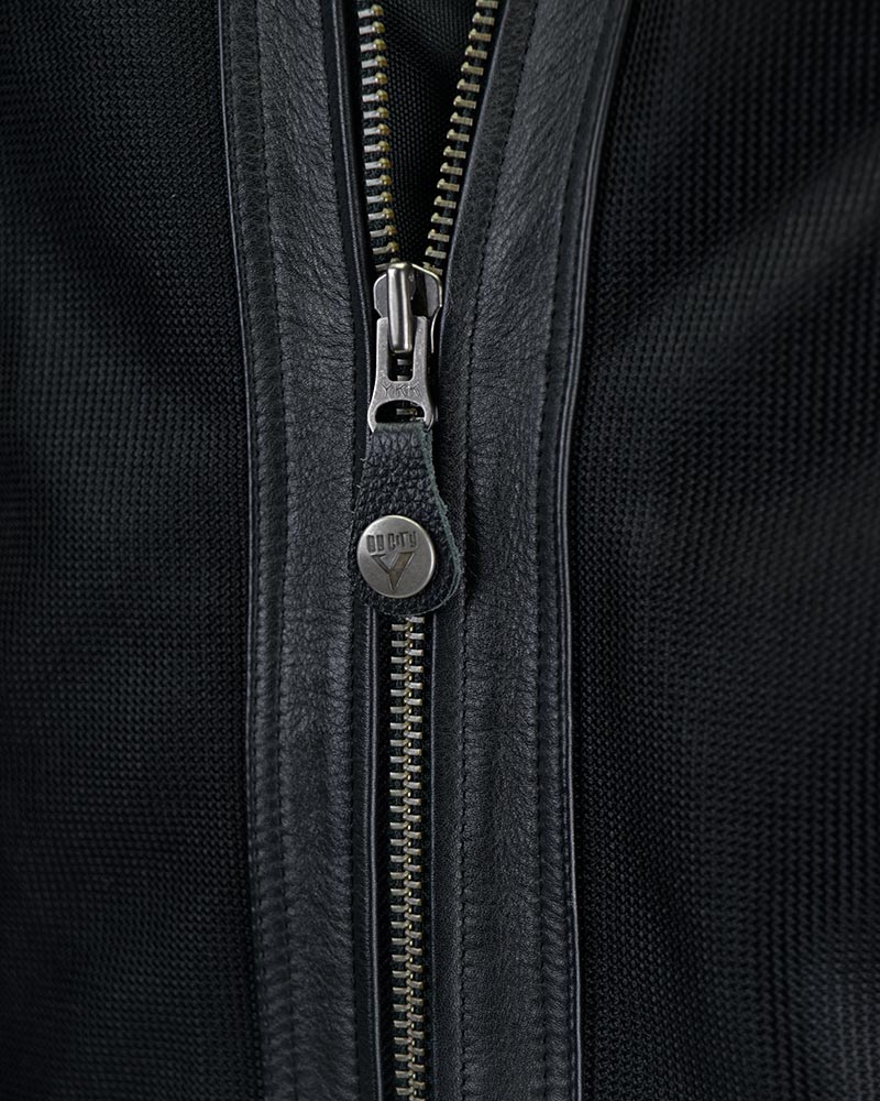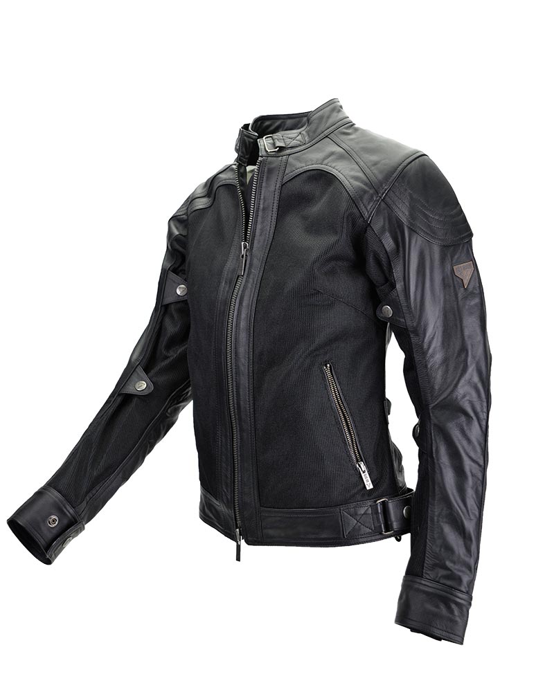Pour les femmes à la pointe de la mode et de la technique, notre blouson de moto pour femme Sahara associe un cuir de haute qualité à notre maille résistante, ce qui en fait la combinaison parfaite pour les mois les plus chauds, car il répond à la norme CE prEN17092-4:2018 avec le niveau A, tout en intégrant des protections amovibles ” Flexishock ” aux coudes et aux épaules (niveau 2 EN1621-1:2012), ainsi qu’une poche arrière pour la protection du dos.