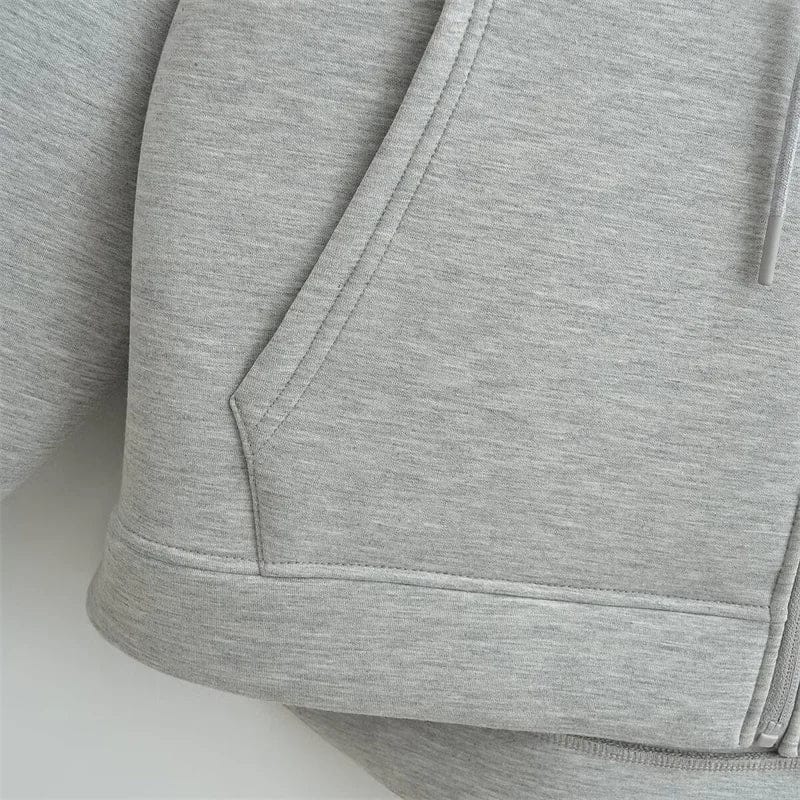 Zip Up Hoodie Thick Solid Confort et tenue. Le problème des zips habituels, c’est qu’ils ondulent. Pas celui-là. Le tissu est assez rigide pour garder une ligne nette le long du corps. C’est propre et net.